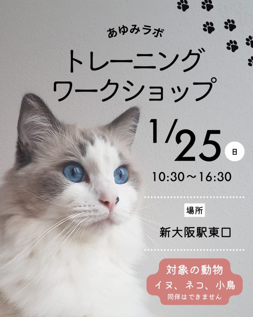 新大阪/1月25日(日)/ターゲットトレーニングワークショップ 2026年1月21日 最終更新日時 : 2026年1月21日 po2000oh コース コンパニオンアニマル/コンパニオンバードのためのハズバンダリートレーニング 形 式 対面:新大阪 日 時 2026年1月25日(日) 10:30~16:30 受講料 12,000円 詳細・申し込みはこちら
